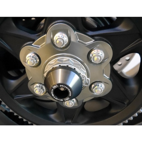 BRAND: Evotech Performance SKU: PRN013098-25Protect your expensive Monster 1200 R swingarm and rear brake callipers with these rear spindle bobbins (axle sliders) from Evotech Performance. They are retained by stainless steel spindles and stainless nyloc nuts for extra security and are very easy to fit.