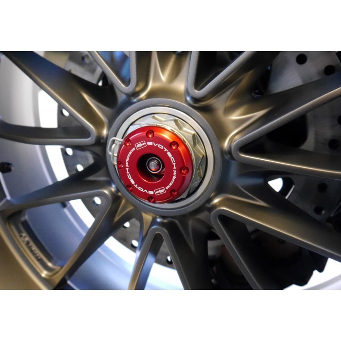 BRAND: Evotech Performance SKU: PRN013098-28Protect your expensive Panigale V4 swingarm and rear brake callipers with these rear spindle bobbins (axle sliders) from Evotech Performance. They are retained by stainless steel spindles and stainless nyloc nuts for extra security and are very easy to fit.