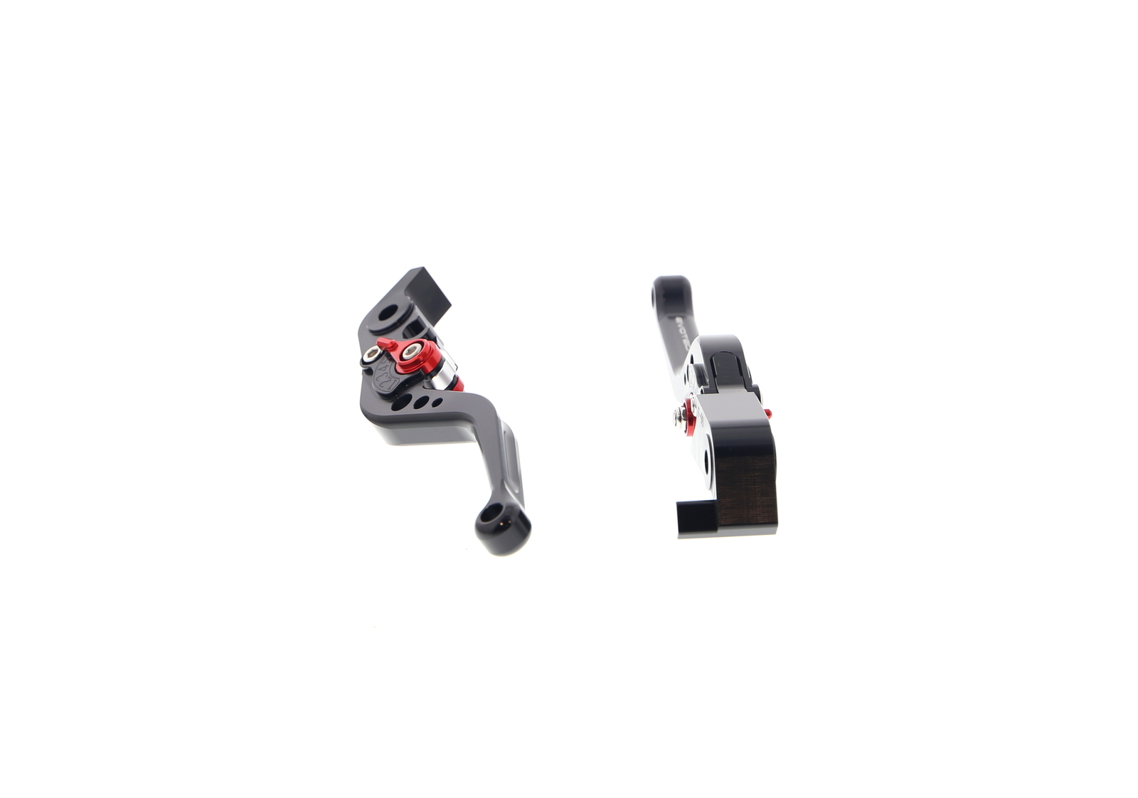 BRAND: Evotech Performance SKU: PRN002407-002409-69These short levers for the Streetfighter V4 S are a direct replacement for the originals and have been CNC machined from billet aluminium and finished in anodised black coating. They also have a red 6 speed position adjuster to make those little tweaks nice and easy.