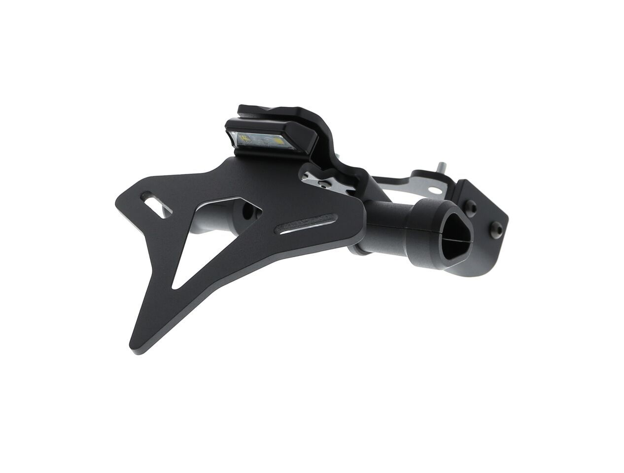 BRAND: Evotech Performance SKU: PRN013753-02This tail tidy (fender eliminator) for the FZ-09 replaces the standard swing arm number plate mount, placing the license plate under the back seat.