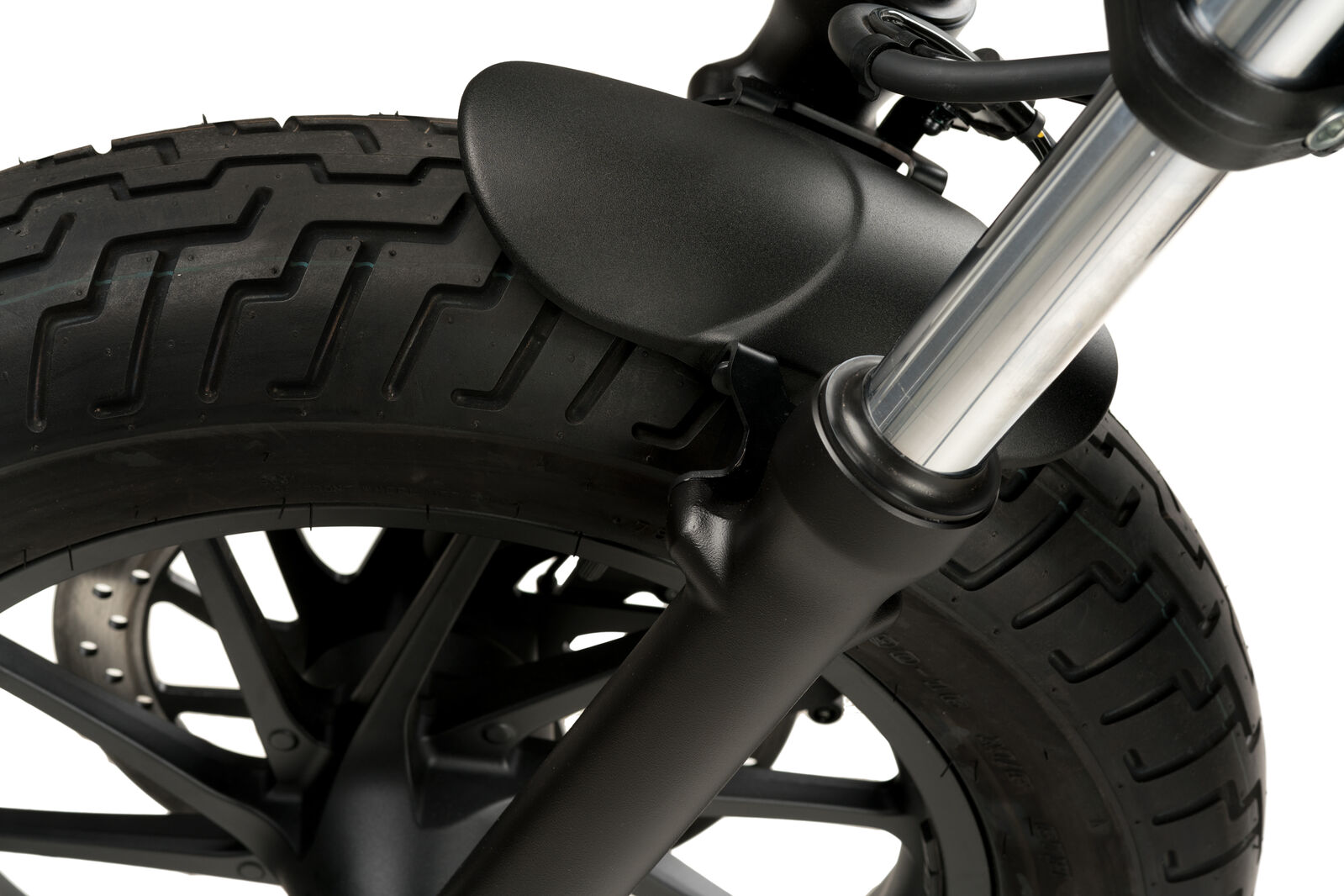 The front fender is specifically developed for each motorcycle, designed and manufactured in Barcelona thanks to the most innovative technology of metal working and milling, with a black finish for an aggressive and elegant look.