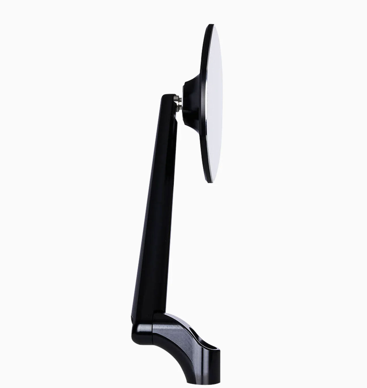 The handlebar end mirror can be mounted above or below the handlebar. The small arm can be swiveled. The mirror is suitable for the right and left side. Mounting is directly on the handlebar end (22 mm and 1 inch) or if the grips and fittings can not be moved, using the mo.view bar adapter.