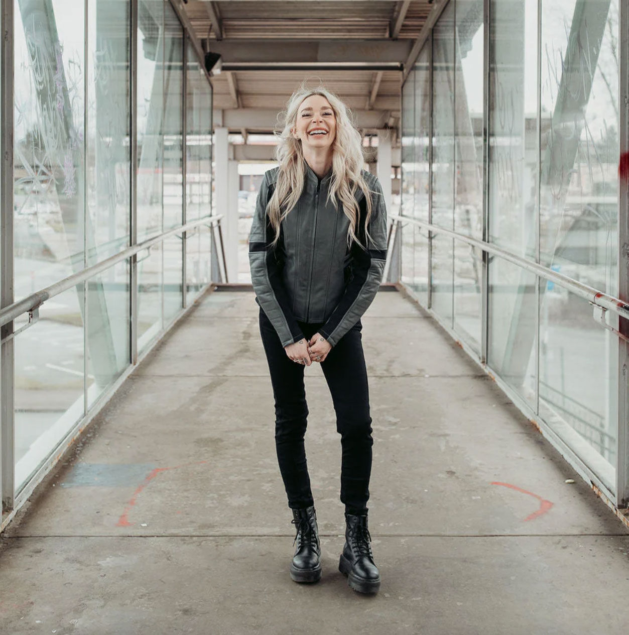 MotoGirl Amelia Grey Leather Jacket