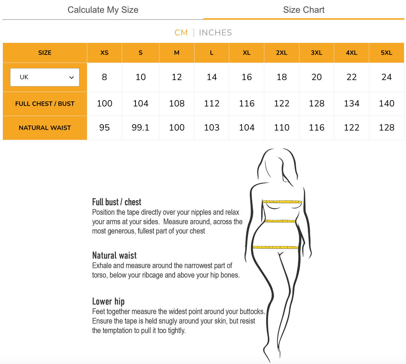 XS (UK 8) – 5XL (UK 24)