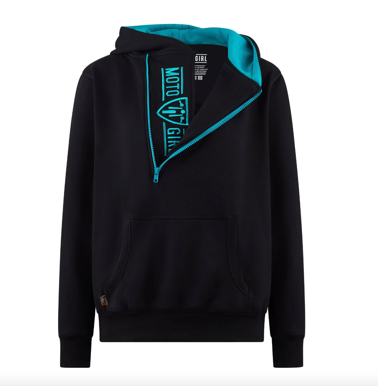 BRAND: MotoGirl SKU: HOOD-TEA-XLThe MotoGirl Helmet Hoodie is the perfect blend of comfort, style, and practicality. Designed with a full front zipper, it’s easy to slip on or off without removing your helmet — ideal for riders on the go. Its fitted design makes it perfect to wear under your motorcycle jacket or as a cosy everyday layer when you’re off the bike. This is the teal and black version.