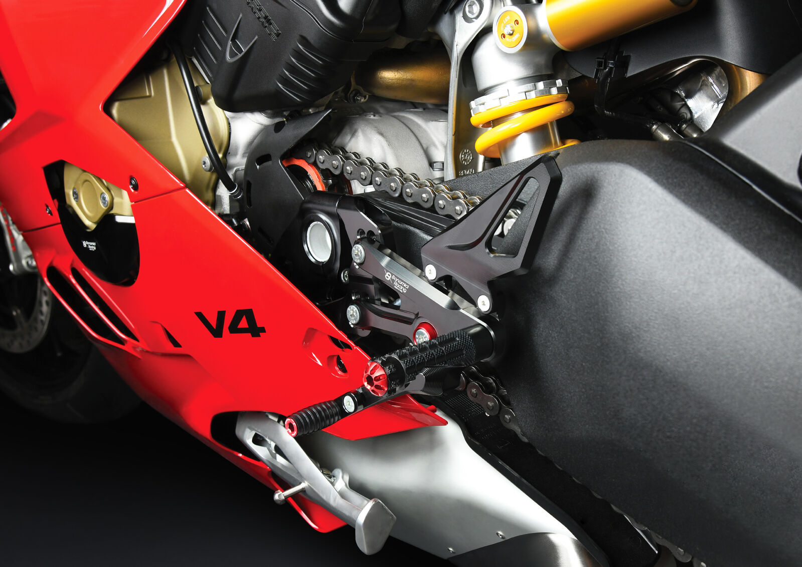 BRAND: Bonamici Racing SKU: DV4These rearsets for the Panigale V4/R/S (2018 - 2024) are manufactured in Italy and are superb quality.