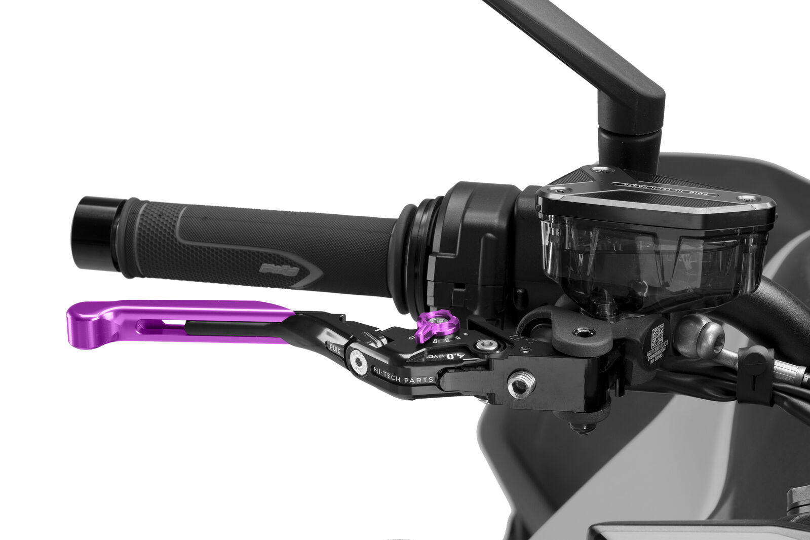 BRAND: Puig SKU: 414LNLThis is a Puig 4.0 brake lever, folding and adjustable, with a purple extender and purple adjuster (main brake lever is always black).