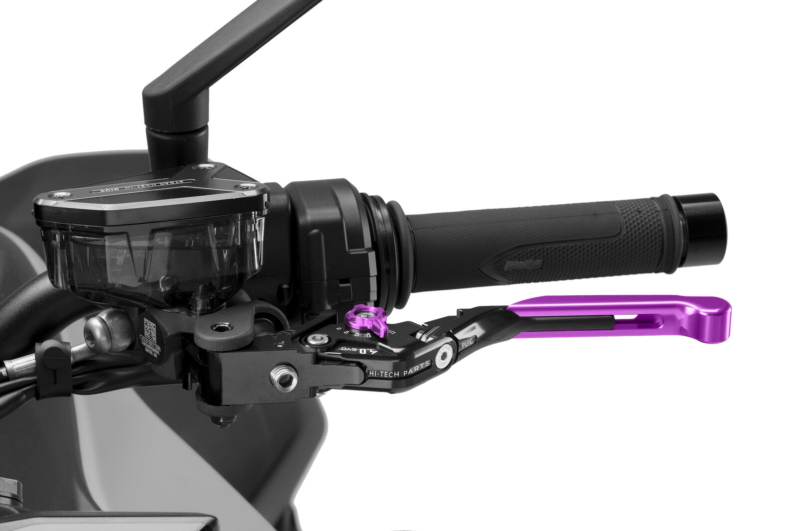 BRAND: Puig SKU: 424LNLThis is a Puig 4.0 clutch lever, folding and adjustable, with a purple extender and purple adjuster (main lever is always black).