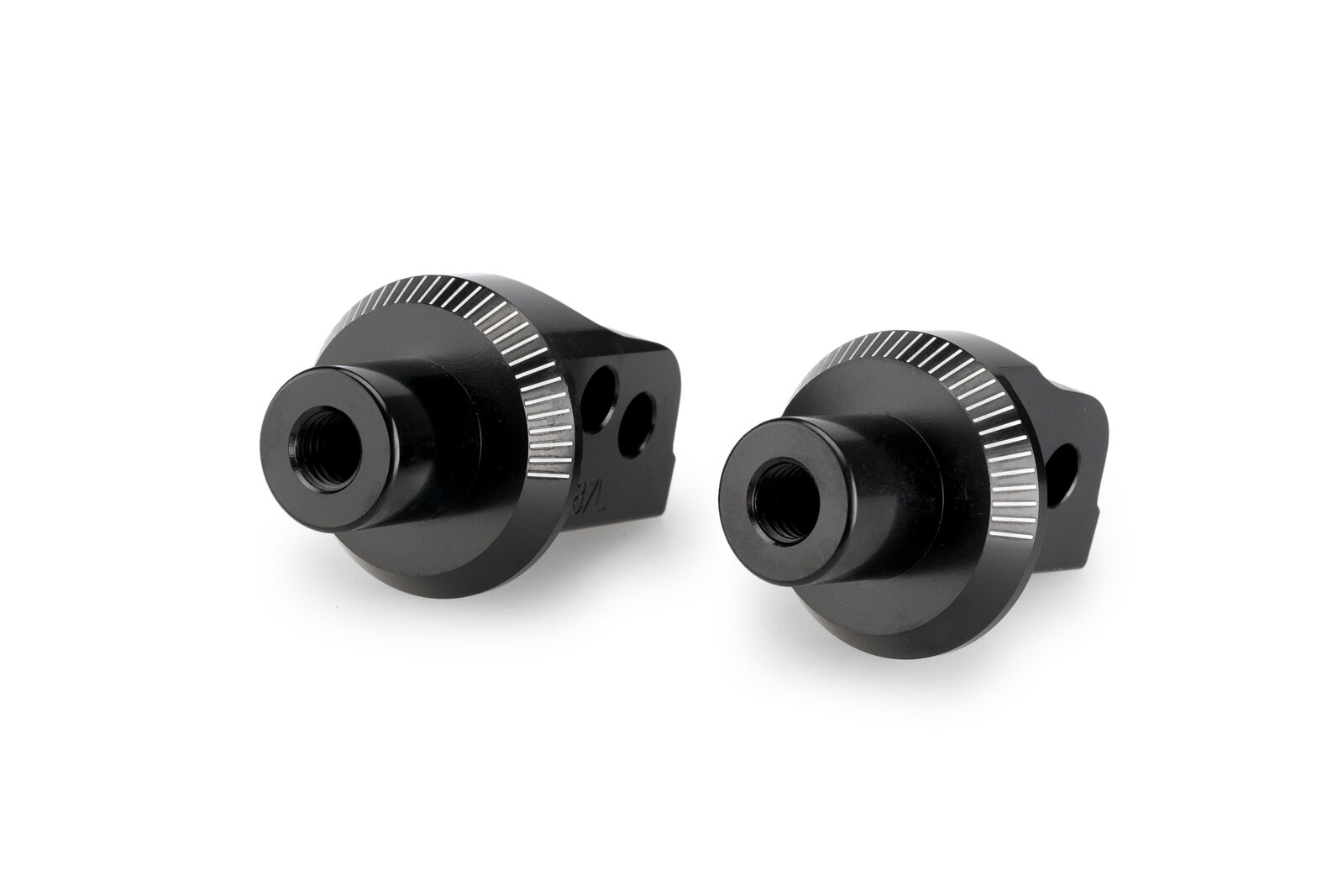 Adaptors machined from a high-performance Ergal 7075 aluminum block and black anodized.