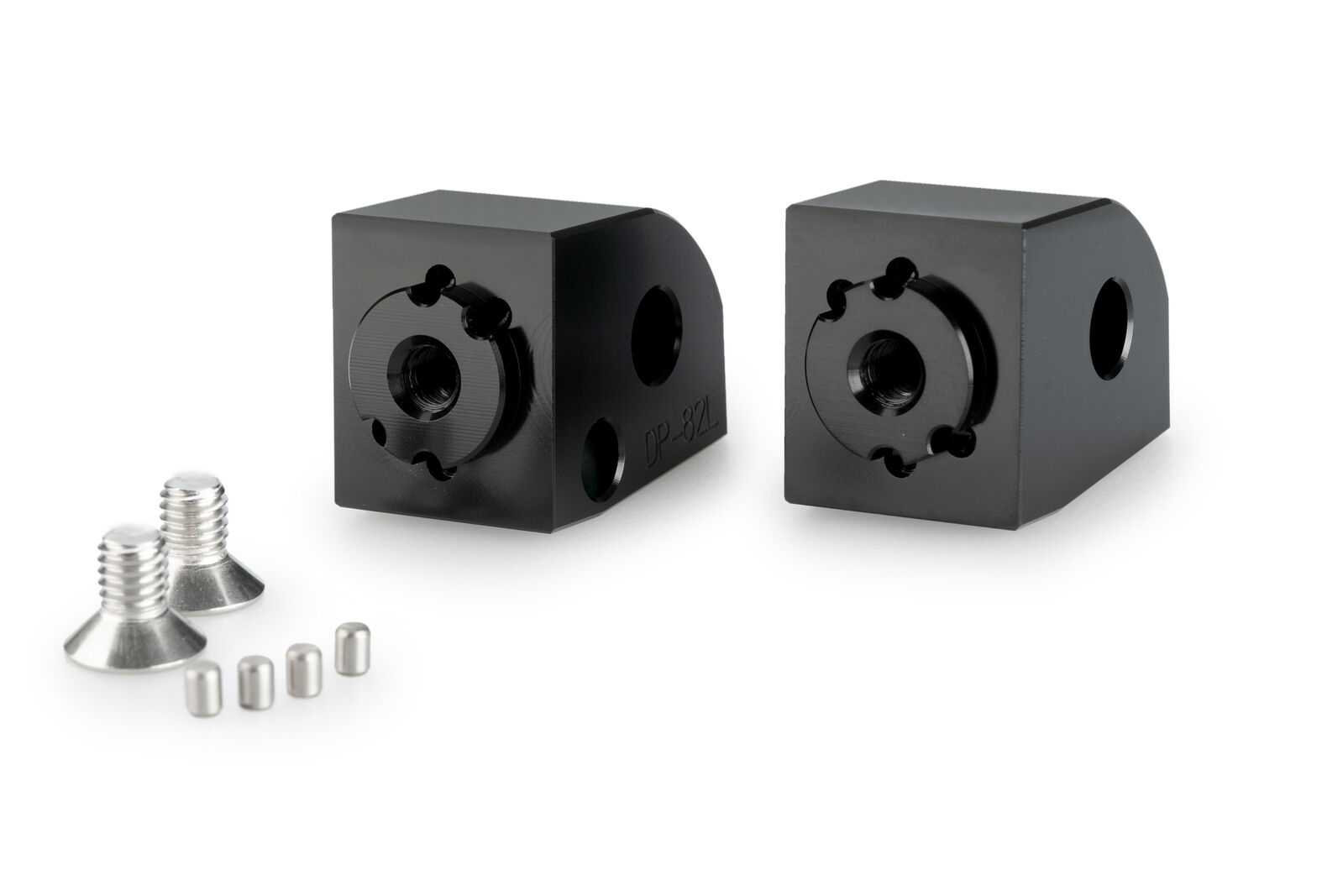 Adaptors machined from a high-performance Ergal 7075 aluminum block and black anodized.