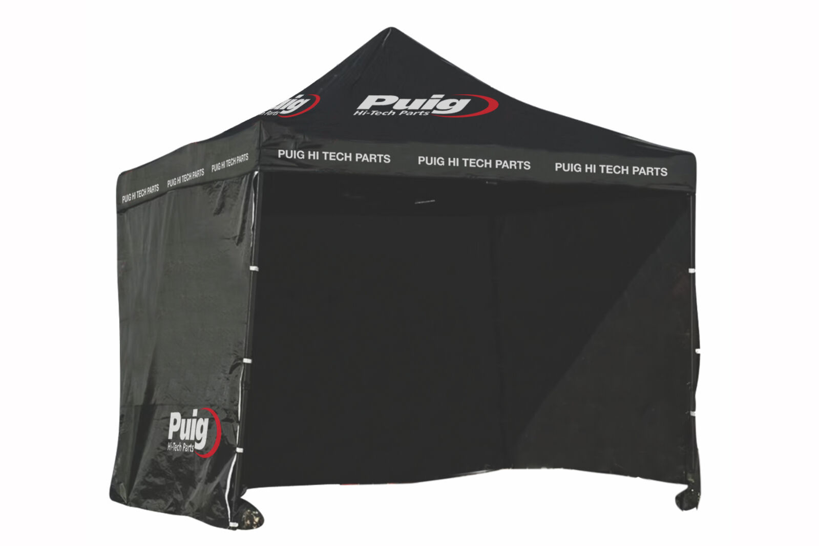 With the new folding tent from Puig you will always have the motorcycle and all the equipment protected from the sun, rain or wind, ideal for having your own space on the outside of the racetracks or in any motorcycling event.