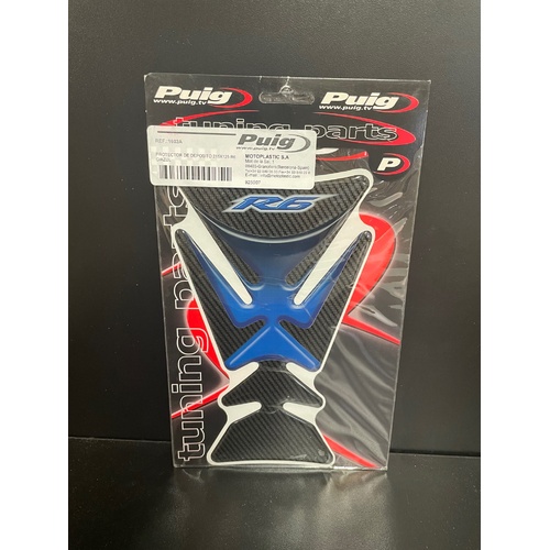 BRAND: Puig SKU: 1603AThis tank pad for the R6 is made of very flexible plastic material and with a high quality finish, helping protect against scratches caused by the friction of the rider's pants while riding.