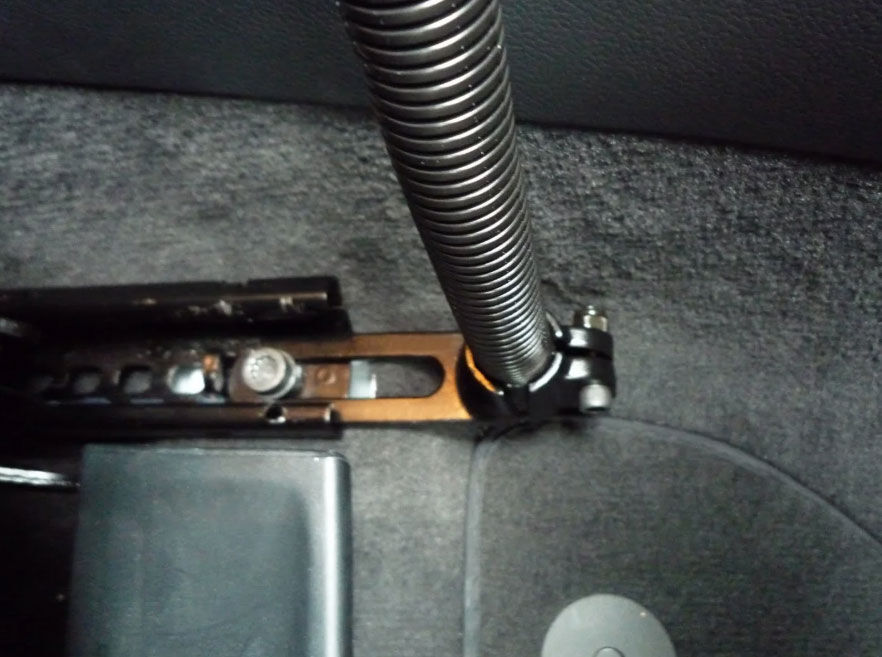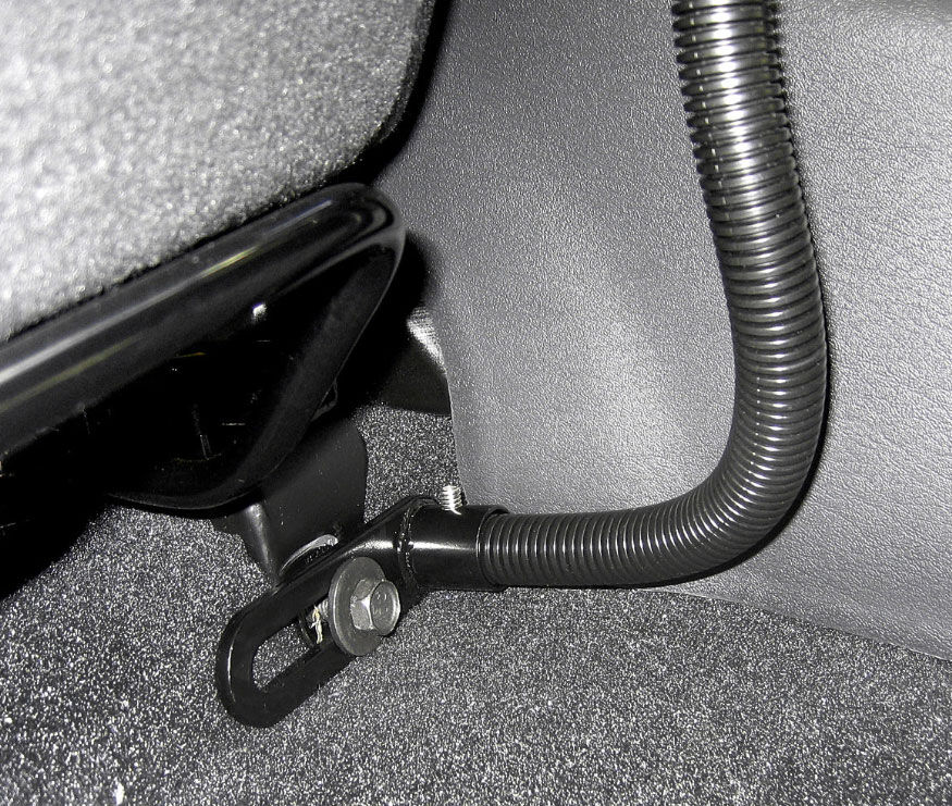 - Universal vehicle mount attaches to the seat rail with no drilling required; the 45.7 cm aluminium rod bends to your ideal position.