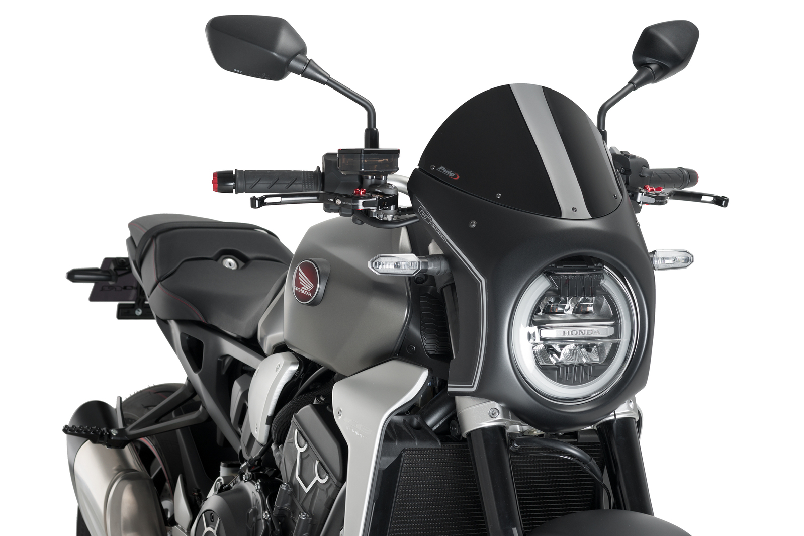 Puig has two types of fairings depending on the diameter of the headlight of your bike: 195mm or 180mm.