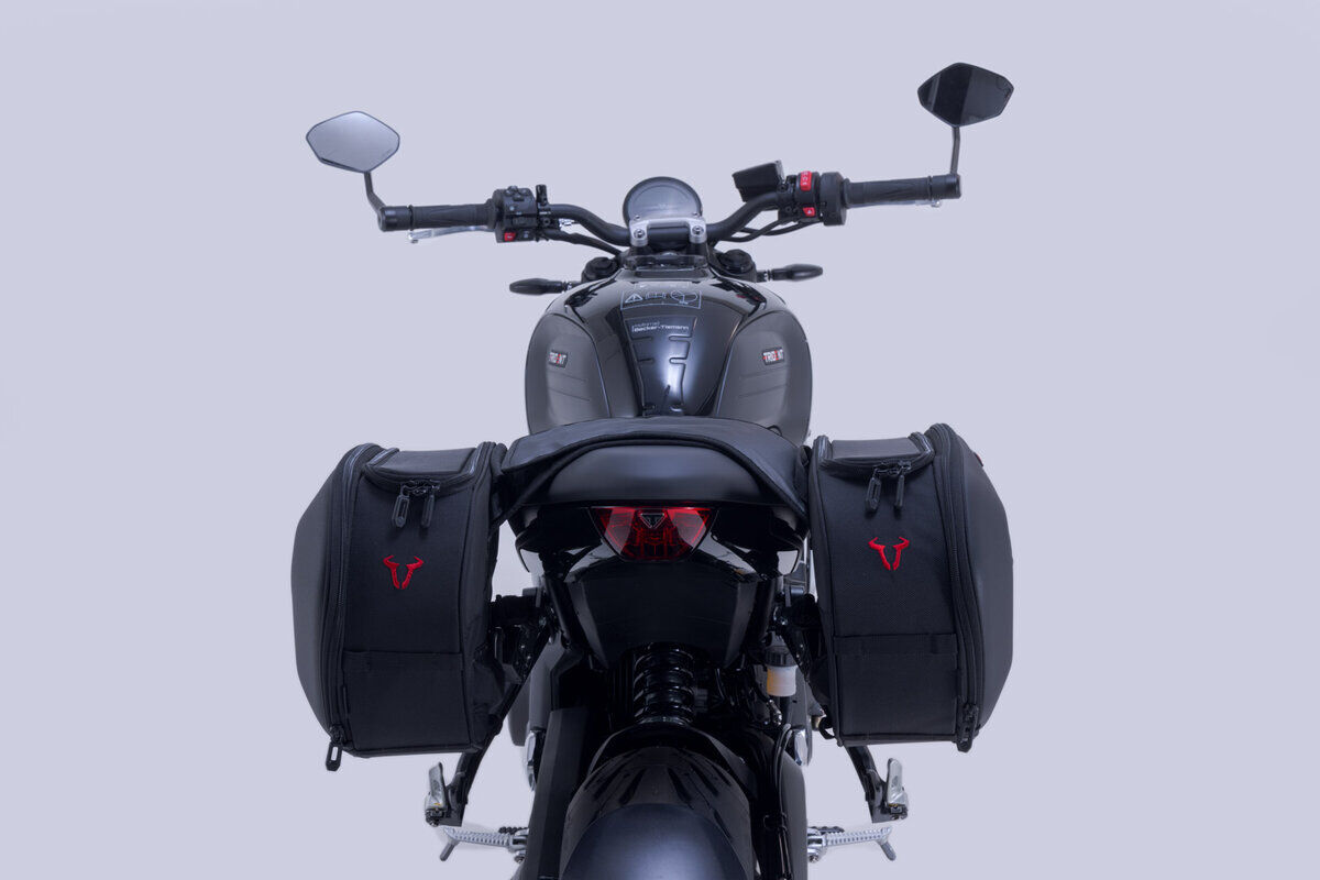 BRAND: SW-Motech SKU: BCHTA1174036100The high version of the PRO BLAZE saddlebags for the Triumph Trident 660 and Daytona 660 is specifically designed for motorcycles with a high-mounted exhaust. Thanks to their raised position, the bags remain safely clear of exhaust heat. SW-MOTECH supplies this set complete with bike-specific support arms for a secure and precise fit.