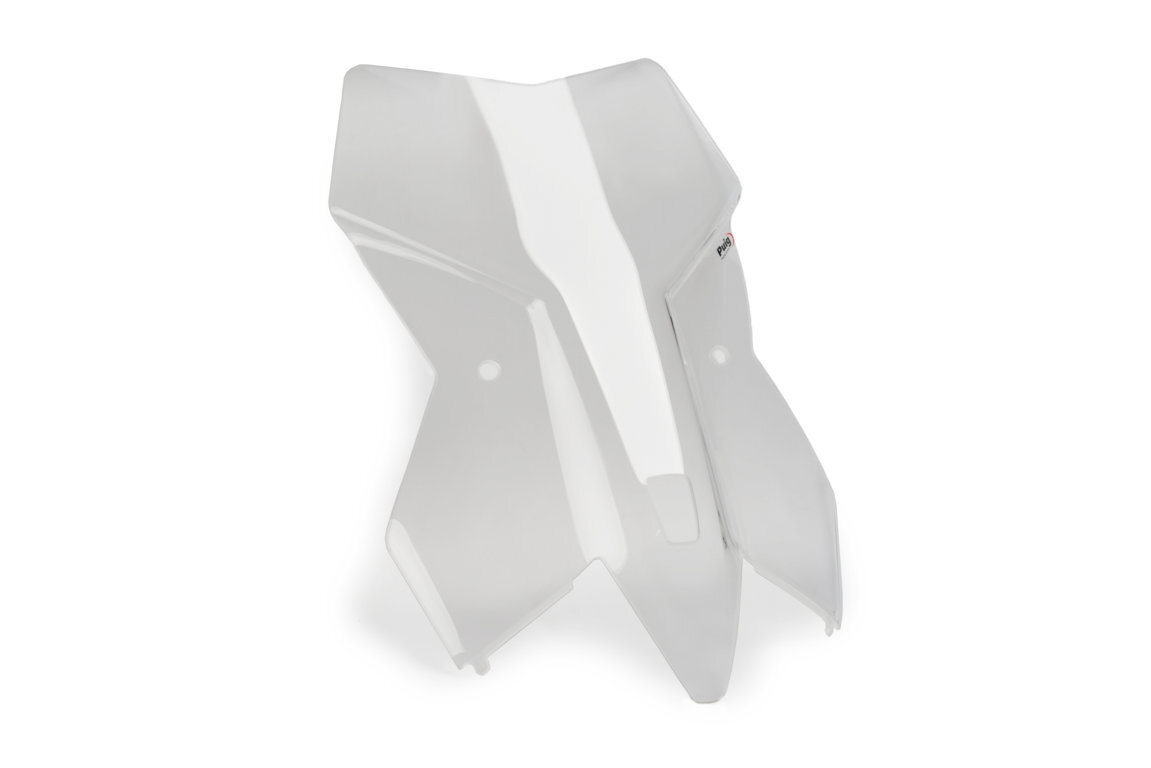 This clear touring screen for the 390 Adventure sits 200m above the guages and has been manufactured using 4mm thick acrylic material, with UV protection and with a 2mm rounded edge.
